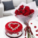 Red Roses and Heart Cake Set