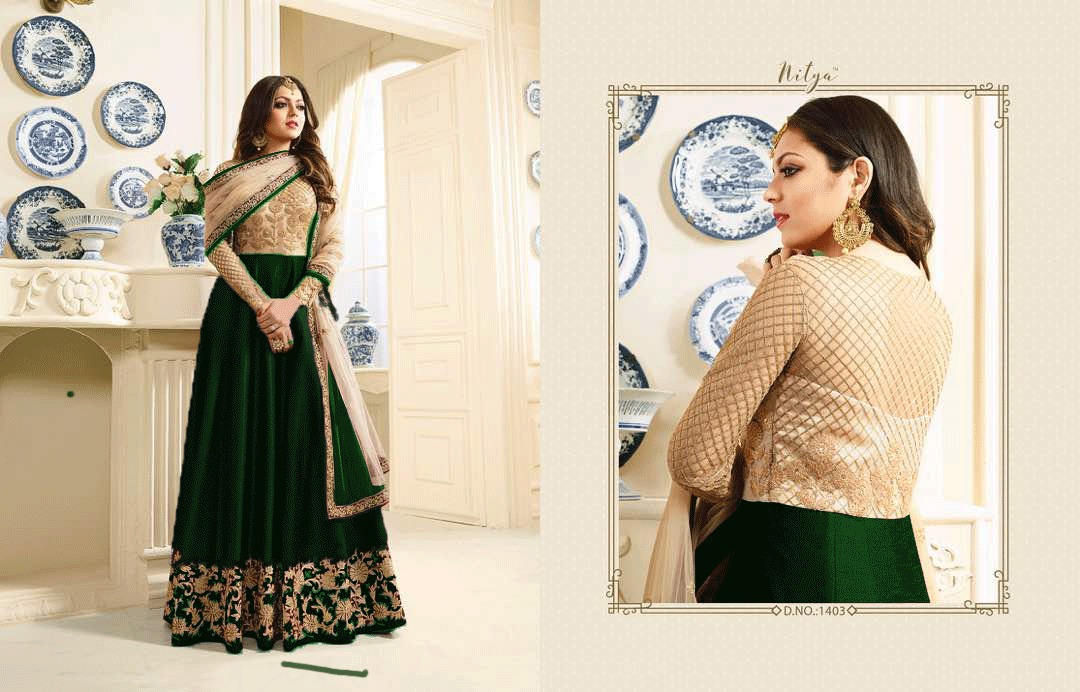 Green embroidered silk and net salwar semi stitched