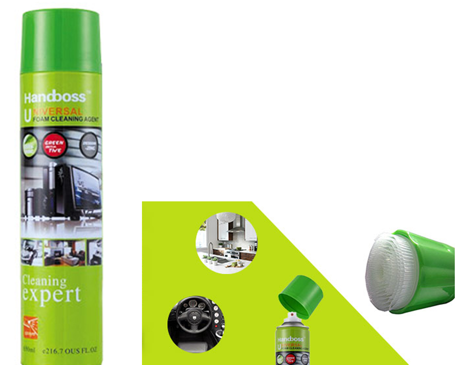 Swing the bottle and vetucally spary onto the desired surface 20cm away. Gently wipe the surface with soft fabric 0.5 minute later Keep it onto serious dirt for a longer time and scrub hard to sacratch it