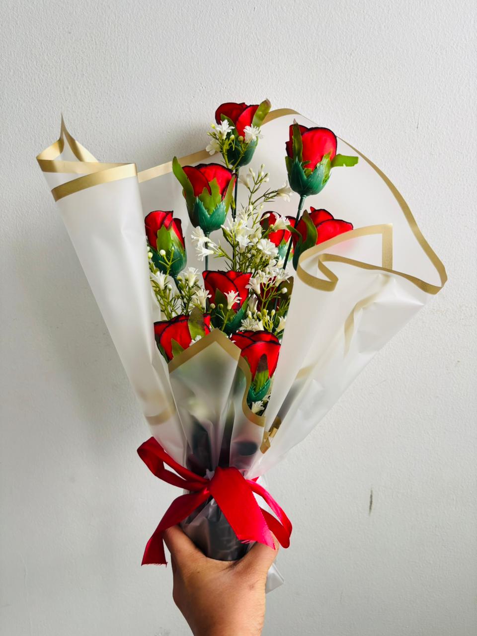 Looking for a gift that is as unique as your loved one? Our Handybuy.lk Custom Collection allows you to give more than just flowers—it lets you give a personalized experience. Crafted with the highest quality silk flowers, this bouquet offers the luxury of real roses with the durability of a lifelong keepsake