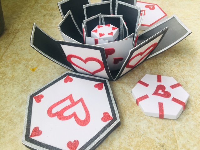 It is a 4 layer explosion box and  who want to customised it and express your love to your partner!!!!