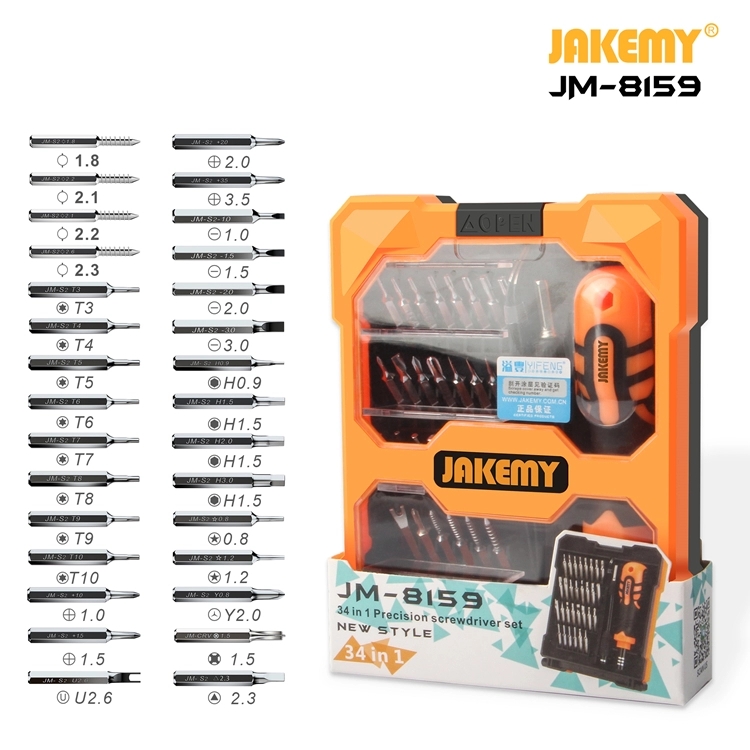 JAKEMY JM-8159 34 in 1 Screwdriver Ratchet Hand-tools Suite Furniture Computer Electrical maintenance tools also called 34-in-1 interchangeable precise manual tool set, jakemy jm 8159, jakemy tools review, repair tools, Tool kit, Hand tools Set, jakemy precision screwdriver set, JM 8159, jakemy screwdriver set 34 in 1 is a professional portable hardware tools; it is Light weight & has compact design. It contains High hardness and good toughness, PP&TPR material and non-slip handle. This set of tools is designed for repairing mobile phones (not for iPhone), hard drives and other electronic products.