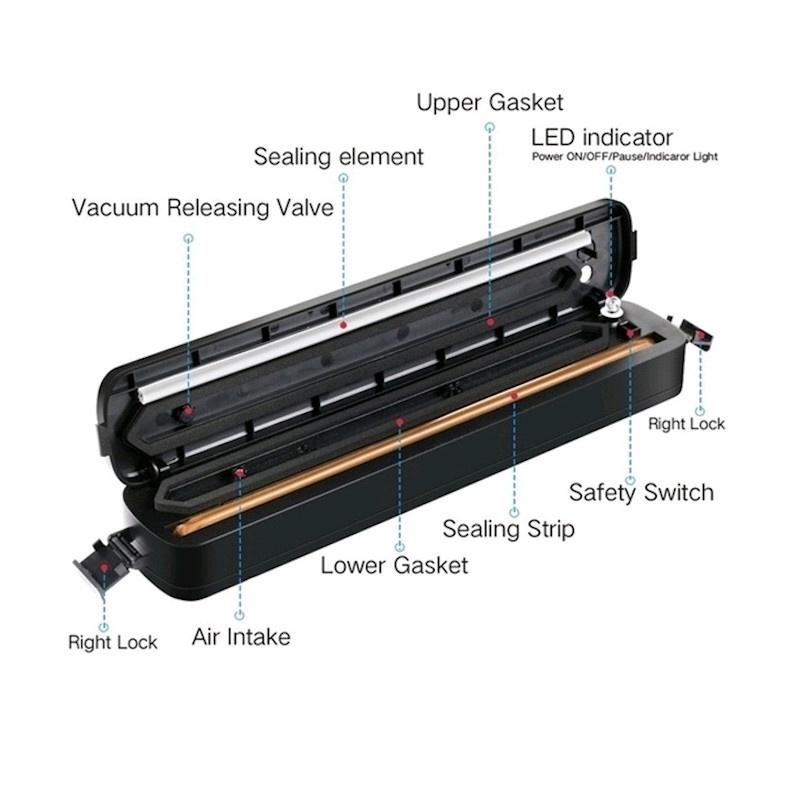 What in the box | 1x Vacuum Sealer, 1x Manual, 15x (20*35cm) Bags 1x power cord (UK,US,AU,EU for optional) | ||